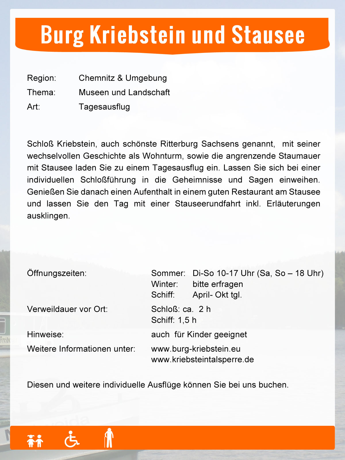 Weitere Informationen unter: www.burg-kriebstein.eu www.kriebsteintalsperre.de